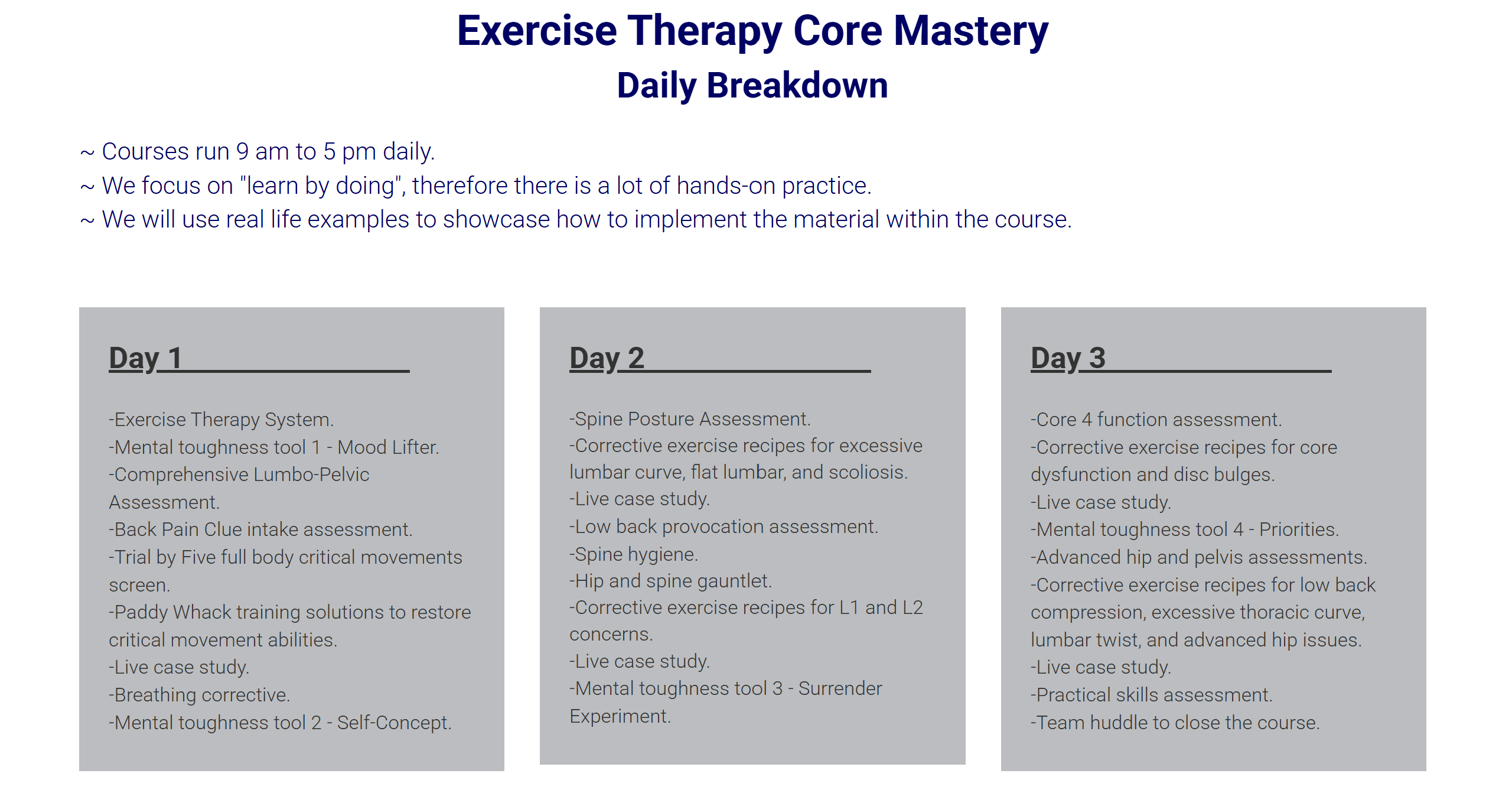 - Corrective exercise recipes for core, spine, and advanced hip issues.